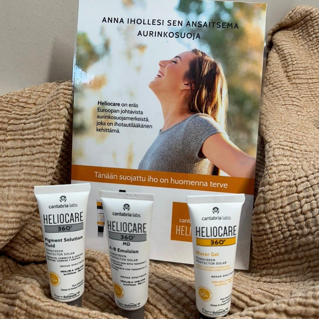 Heliocaren tuotteet ehkäisevät auringon aiheuttamia vaurioita, ihon ennenaikaista ikääntymistä ja aurinkoyliherkkyyttä ainutlaatuisen Fernblock®-teknolgian ja antioksidanttien, kuten vihreän teen ja C- ja E-vitamiinien avulla.